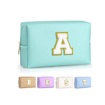 Fashionable PU Leather Waterproof Cosmetic Case with Chenille Letters Zipper Closure and Custom Logo