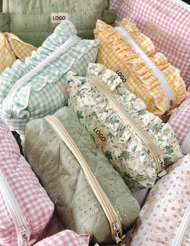 Luxo algodão plissado maquiagem saco bonito personalizado flores design cosméticos sacos logotipo personalizado acolchoado saco cosmético